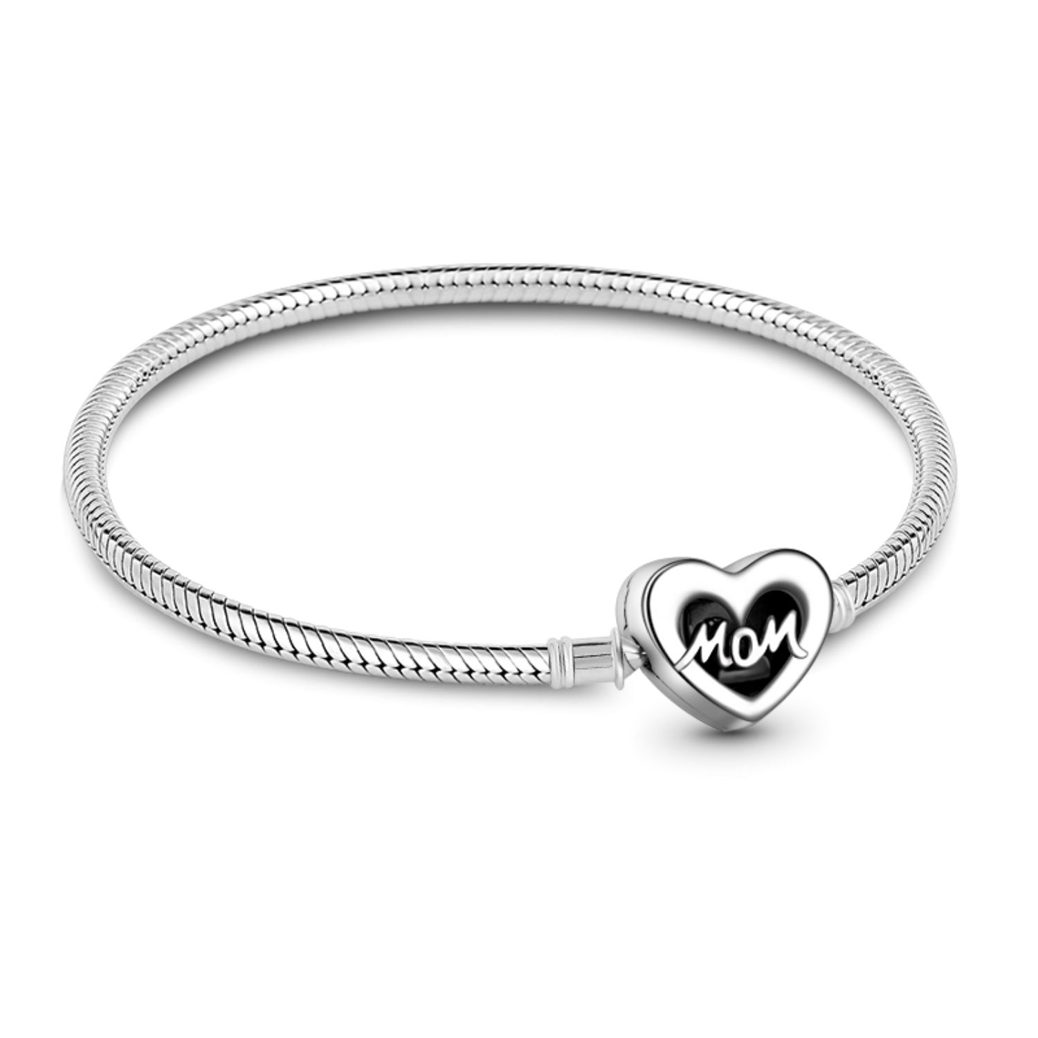 Das Love Mom Basic Schlangenketten Armband ist aus 925 Sterlingsilber mit dem "MOM" auf der Armbandschließe. Füllen Sie es mit Ihren geliebten Charms und Sicherheitskette, und tragen Sie es an Ihrem Handgelenk als Erinnerung daran, wie sehr Sie Ihre Mutter lieben.