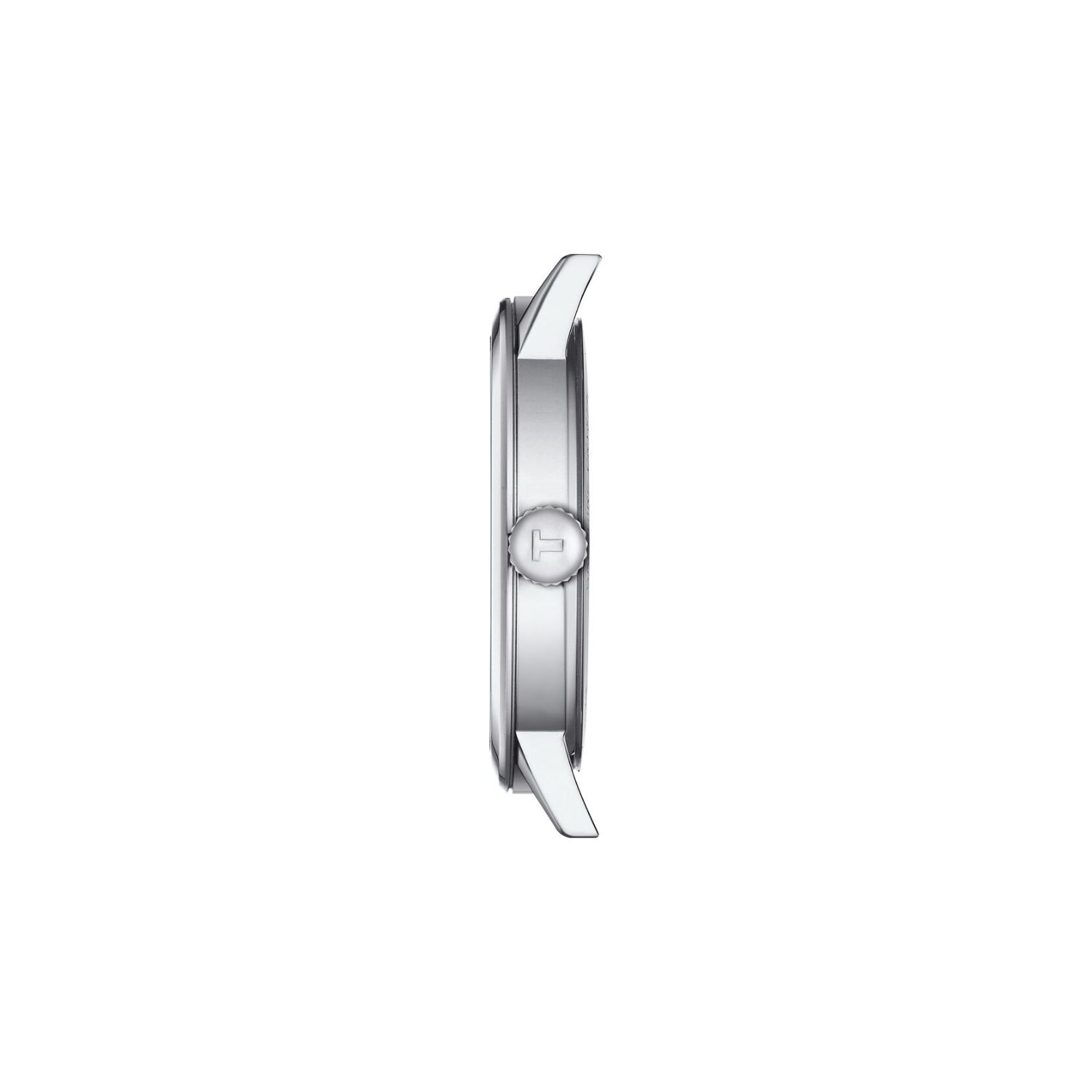 Die Tissot Classic Dream verfügt über ein 316L-Edelstahlgehäuse, kratzfestes Saphirglas sowie ein präzises Swiss Made Quarzwerk mit Endanzeige der Batterielebensdauer. Das Zifferblatt mit Datumsanzeige und schmalen Indexen verleiht der Uhr einen klassischen Look.