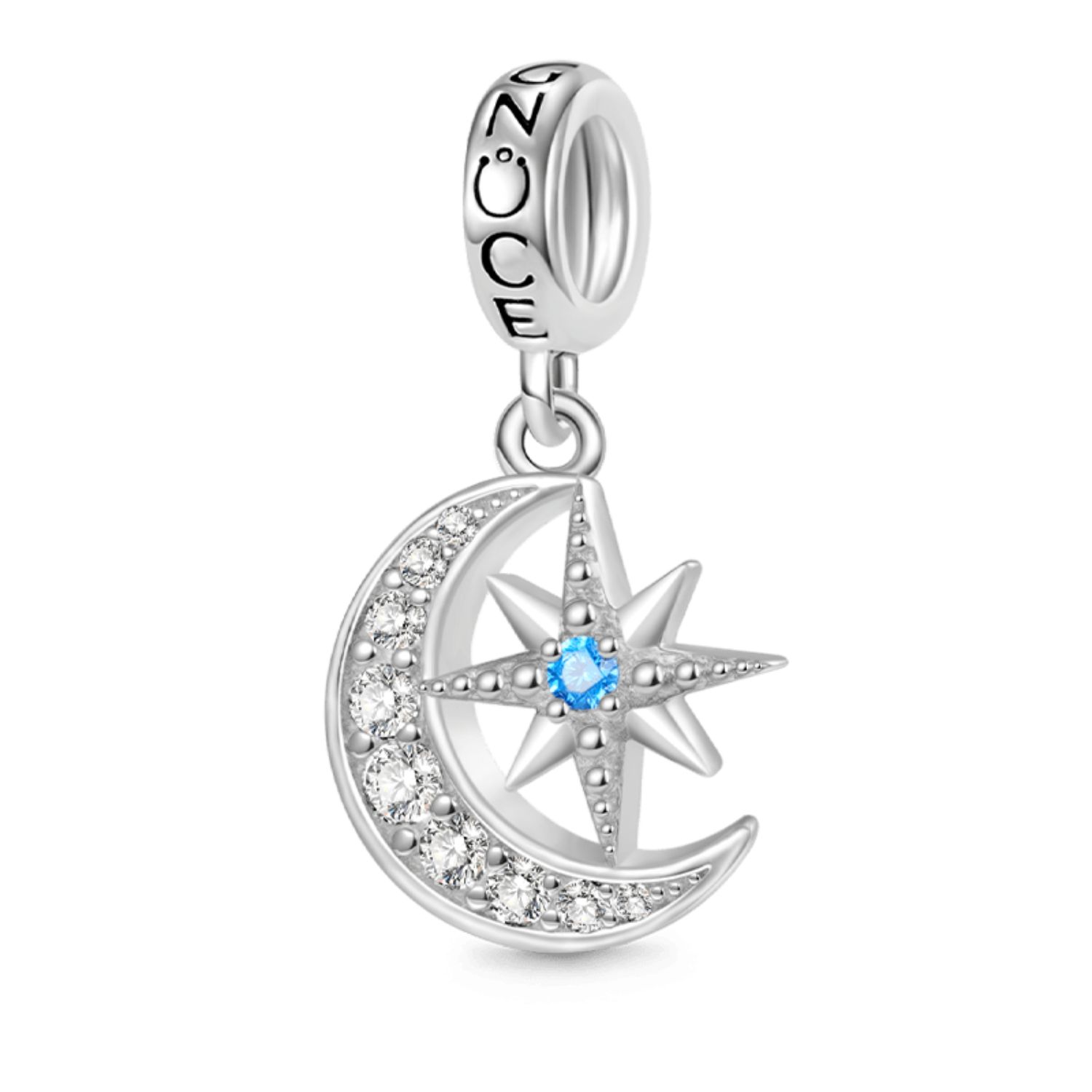 Bringen Sie Ihre Liebe auf die schönste Art und Weise zum Ausdruck: mit diesem Galaxie Mond & Stern Anhänger. Handgefertigt aus 925 Sterling Silber, bietet dieses exquisite Stück, dass mit funkelnden blauen und klaren CZ Stein. Tragen Sie es mit anderen Mond & Stern Design Charms an Ihrem Armband, oder machen Sie es an Ihrer Halskette.