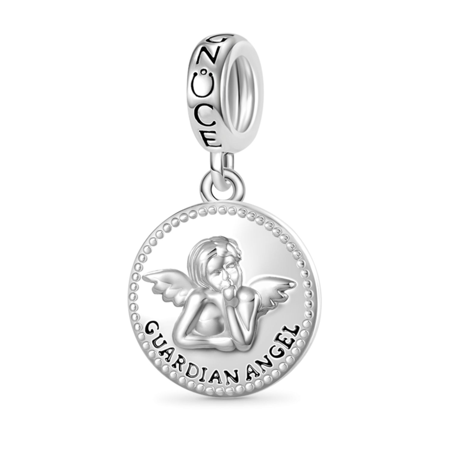 Handgefertigt aus 925 Sterling Silber, zeigt dieser Charm ein Engel-Muster mit der Aufschrift "GUARDIAN ANGEL". Er eignet sich als durchdachtes Geschenk für jemanden, der Trost benötigt oder als Symbol der Dankbarkeit für jemanden, der in Ihrem Leben ein Schutzengel war.
