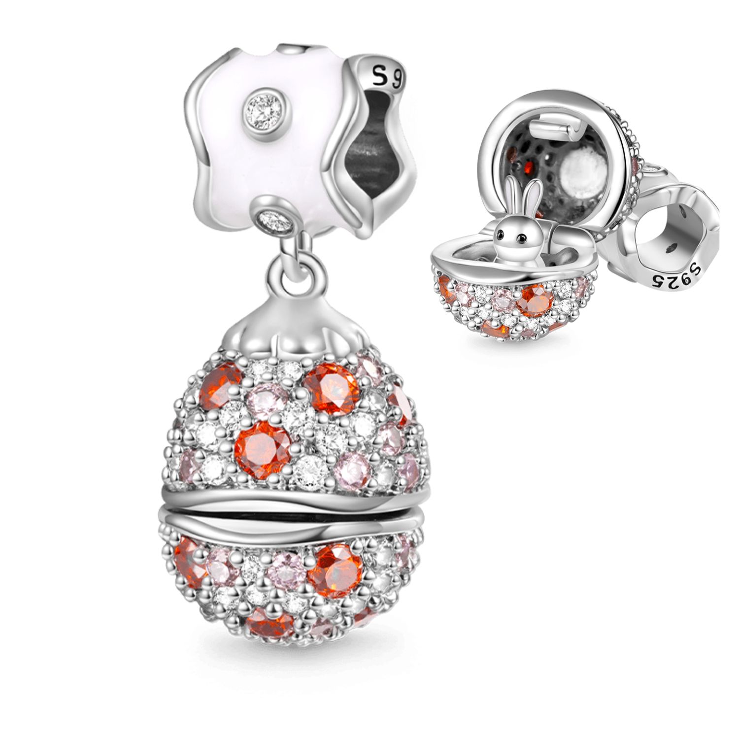 Dieses farbenfrohe Ei ist aus 925 Sterlingsilber handgefertigt und beherbergt ein niedliches Kaninchen, das in exquisiten Details eine Überraschung bietet. Es ist definitiv eine auffällige und liebenswerte Ergänzung zu deinem Armband oder deiner Halskette.