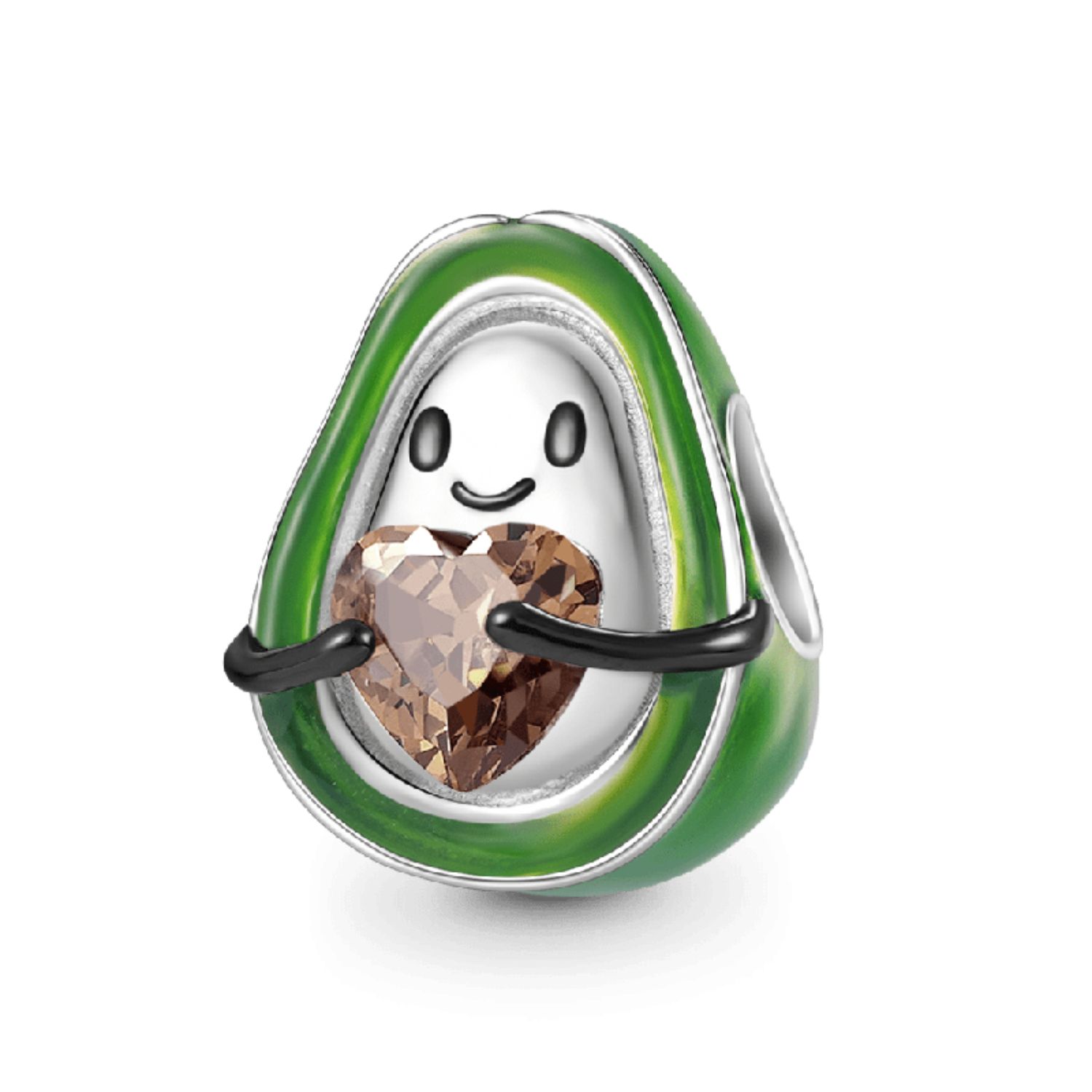 Gnoce Umarmung Sammlung- Frucht Avocado Umarmt einen braunen herzförmigen Edelstein Charm.