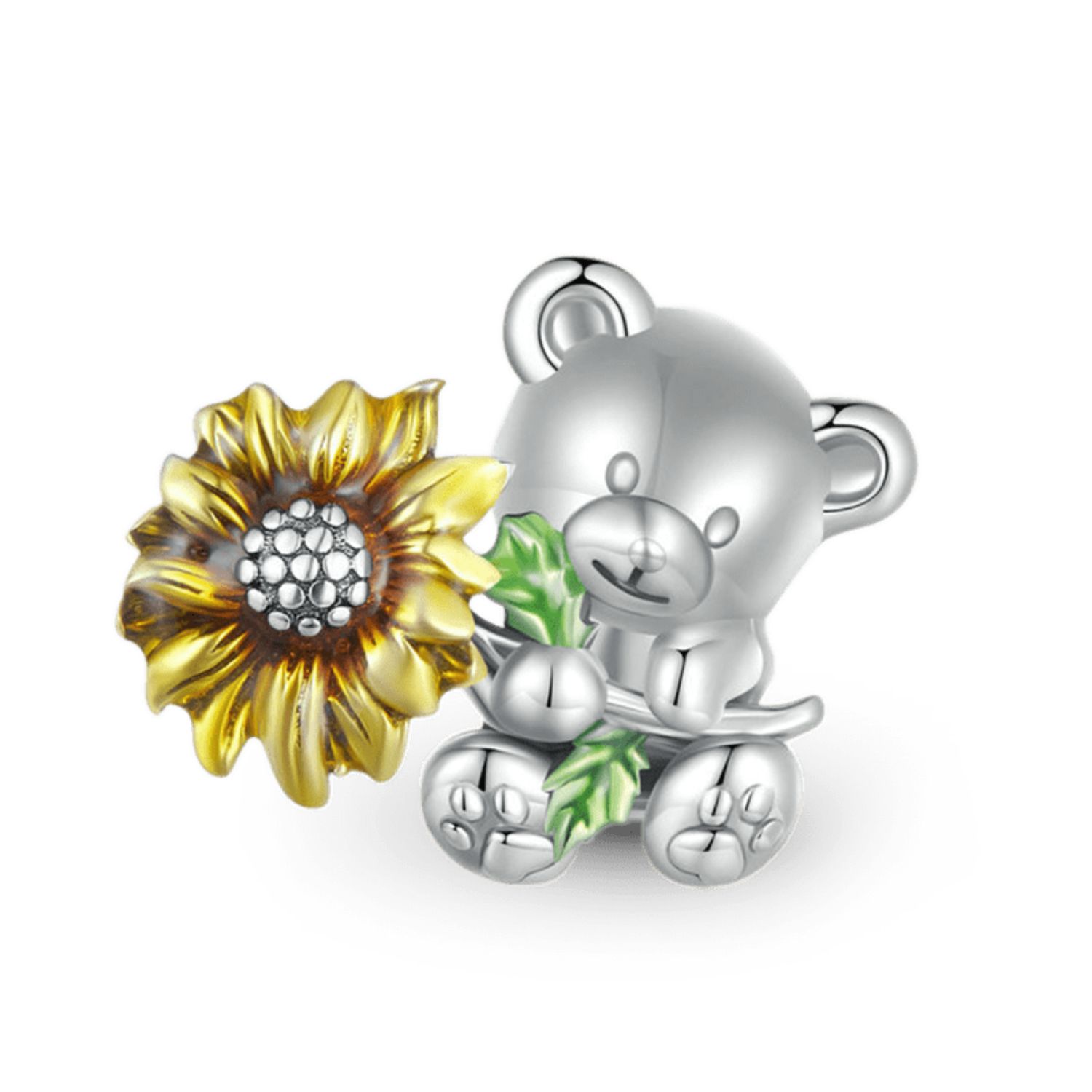 Der Kleine Bär umarmt Sonnenblume Charm ist ein bezauberndes Schmuckstück. Er besteht aus hochwertigem 925 Silber und zeigt einen kleinen Bären, der liebevoll eine strahlende Sonnenblume umarmt. Dieses charmante Accessoire symbolisiert Wärme, Liebe und Freude. Es eignet sich perfekt als Geschenk für einen geliebten Menschen oder als Ergänzung zu Ihrer eigenen Schmucksammlung. Verschönern Sie Ihr Leben mit diesem charmanten und bedeutungsvollen Stück!