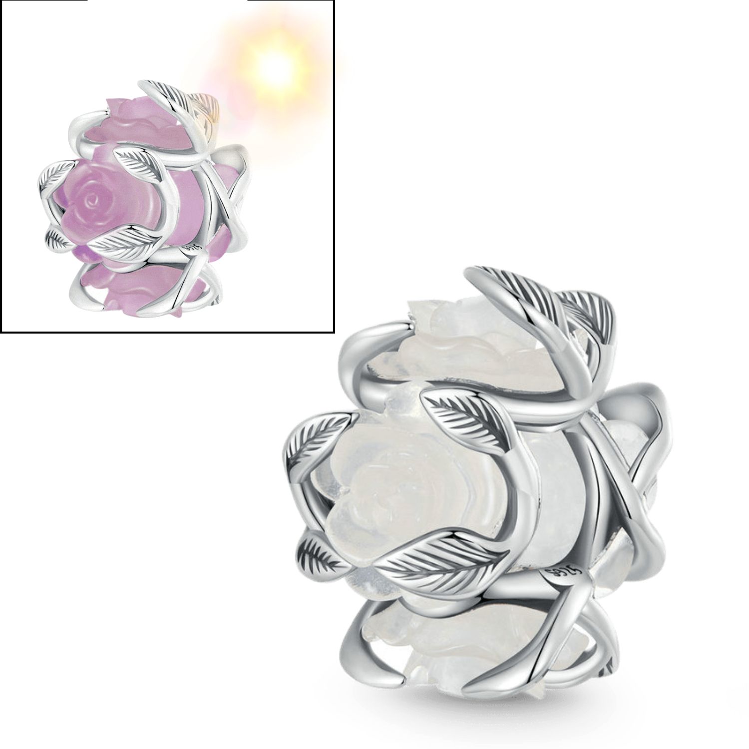 Dieser handgefertigte Charm aus exquisitem 925 Sterlingsilber zeigt ein bezauberndes Rosenblüten-Design, das durch eine farbwechselnde Rosenblüte ergänzt wird, die Ihrem Look einen skurrilen Touch verleiht. Die Rosenblüte ist zunächst klar und wechselt mit UV-Lampen oder Sonnenlicht in verschiedene Farben. Bei Verwendung von UV-Lampen, wie in unserem Video, kann dieser Farbwechsel beschleunigt werden.