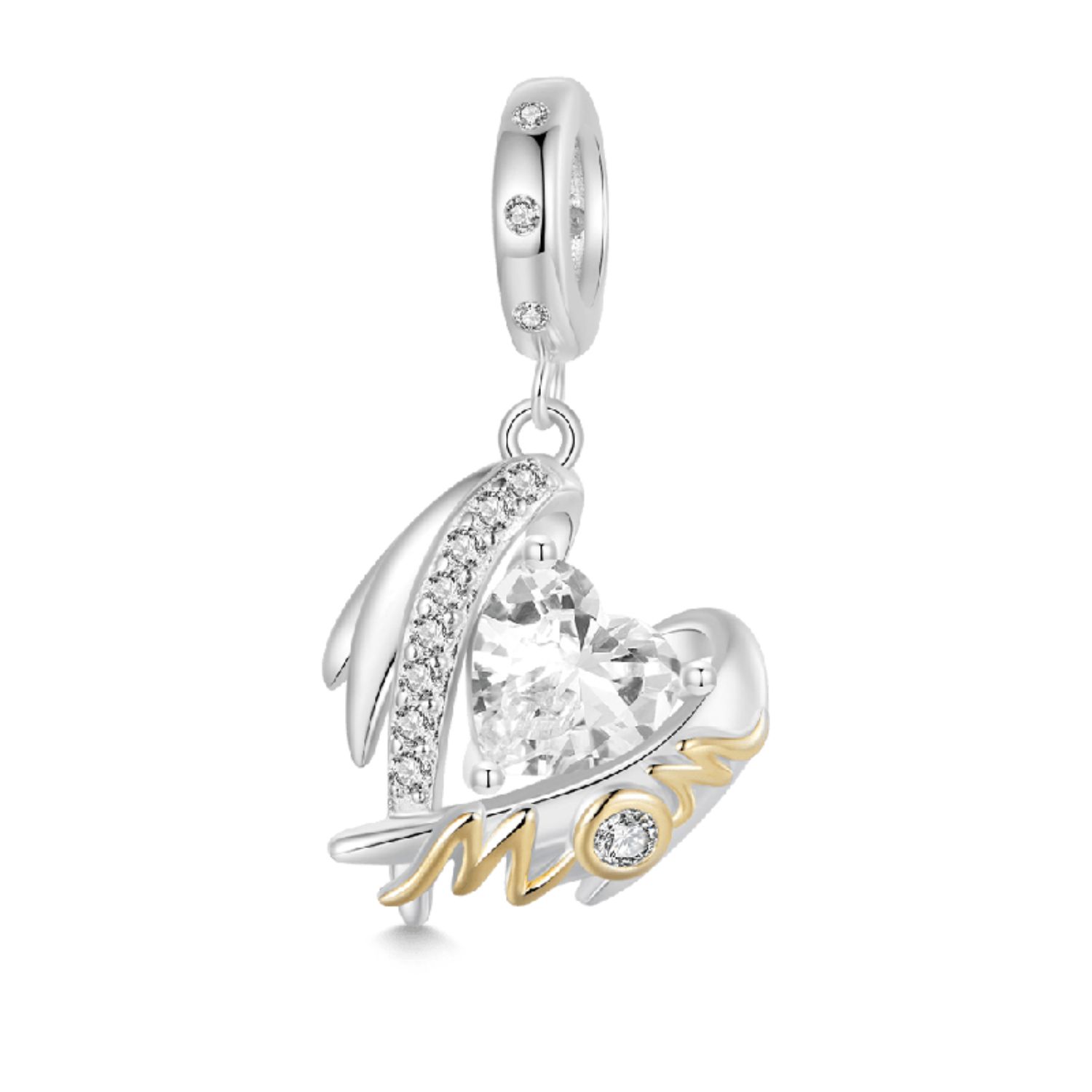 Das aus 925er Sterlingsilber gefertigte Design zeigt ein Paar zarte Flügel, die die Form eines liebevollen Herzens bilden, das mit dem Wort "MOM" verziert ist. Ein funkelnder Zirkoniastein ruht im Herzen und symbolisiert die ewige Verbindung zwischen Mutter und Kind. Ein wertvolles Geschenk, das die schützende Umarmung und Hingabe der Mutterliebe symbolisiert.