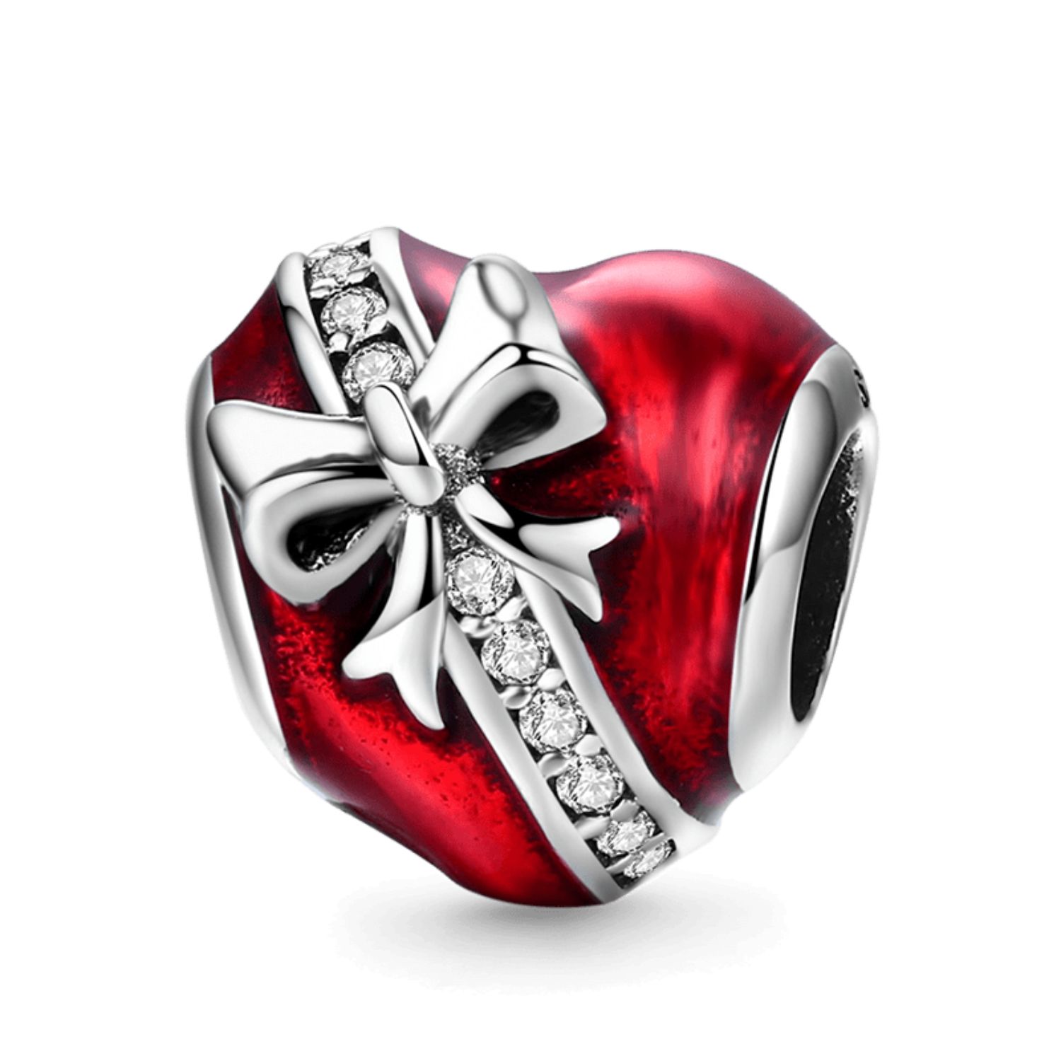 Bringen Sie Ihren Stil zum Strahlen mit dem Herzperlen Charm mit roter Emaille. Tragen Sie es an Ihrem Handgelenk und zeigen Sie der Welt Ihre Liebe mit diesem herzförmigen Charm mit Schleife. Und diese Perle rundet jedes Outfit ab!