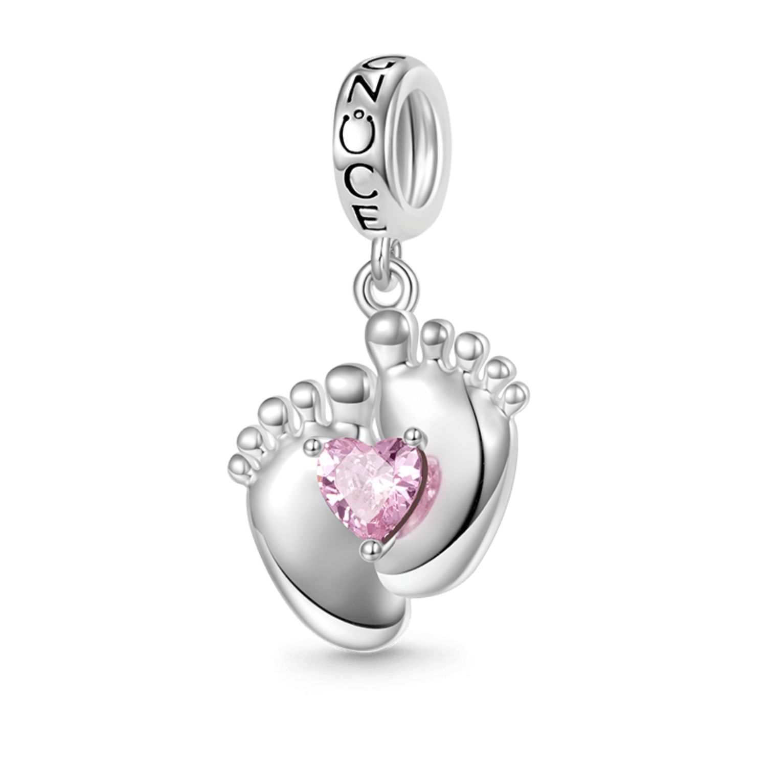 Der Charm zeigt ein bezauberndes Design mit Babyfüßen und einem wunderschönen rosa Herzstein, der einen Hauch von Süße verleiht. Der Charm ist auch gravierbar, so dass Sie eine persönliche Note mit einem Namen, Datum oder einer besonderen Nachricht hinzufügen können. Der mit viel Liebe zum Detail gefertigte Charm ist ein perfektes Geschenk für frischgebackene Eltern oder für alle, die die kostbaren Momente des Lebens zu schätzen wissen.