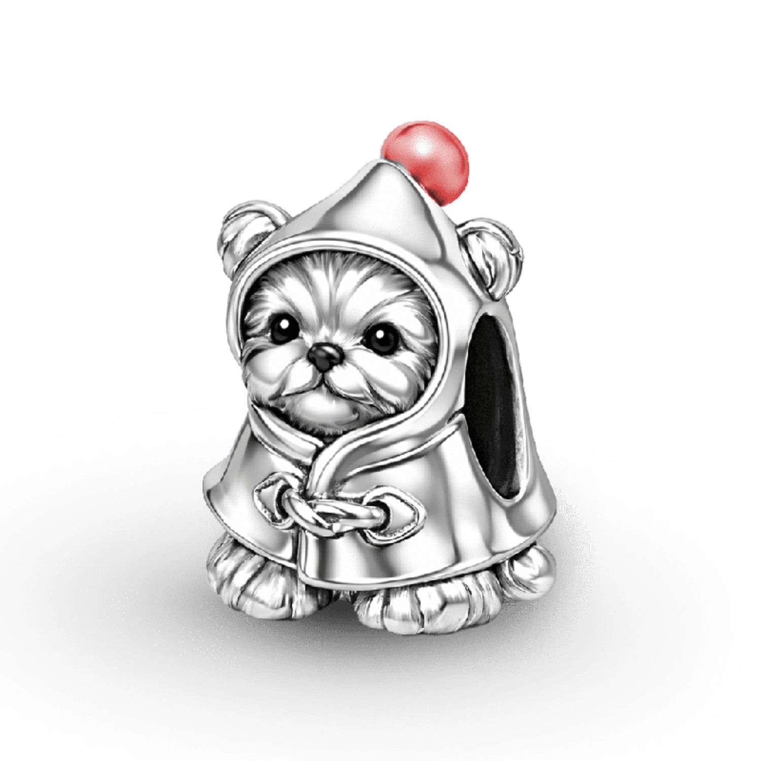 Aus 925 Sterlingsilber gefertigt, zeigt diese Charm Perle einen Bichon Frise Welpen mit Umhang - verziert mit einer roten Perle auf der Kapuze. Sie ermöglicht eine personalisierte Namens Gravur. Als exklusives personalisiertes Geschenk verbindet es die Niedlichkeit des Welpen mit herzlichen individuellen Details - ein liebliches Accessoire für Haustierliebhaber.