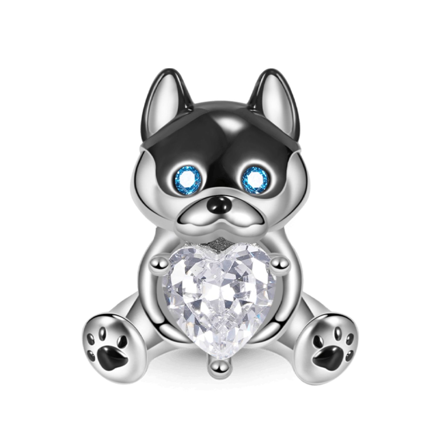 Gnoce Umarmung Sammlung- Tiere Husky Welpe umarmt einen klaren herzförmigen Edelstein Charm.