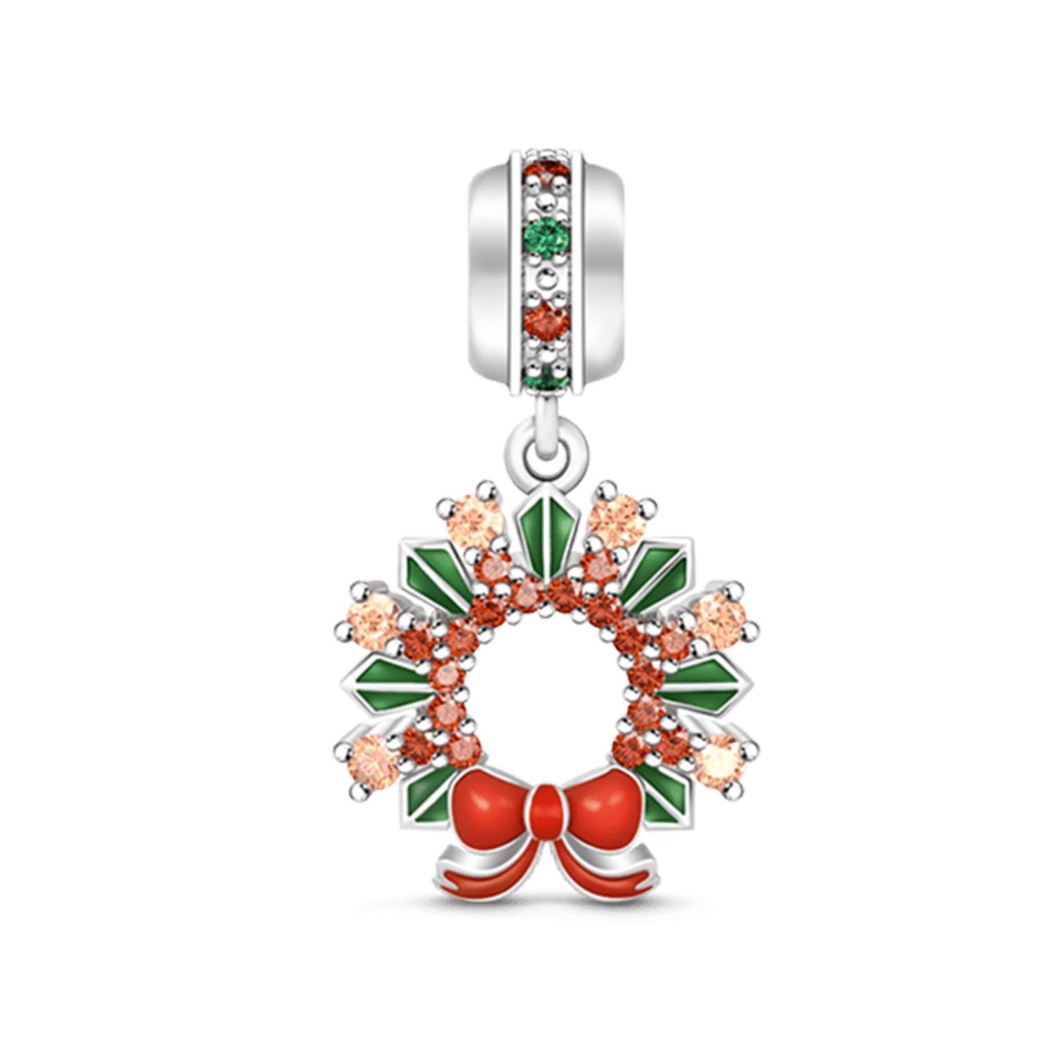 Das gesamte Schmuckstück ist in 925er Sterlingsilber handgefertigt und weiß emailliert, aber die Kranzblätter sind grün mit einem schönen Bowknot darunter. Um Weihnachten zu beleuchten, setzen Designer in jede perfekte Position einige blendend bunte CZ-Steine. Weihnachtskranz lobt das wundervolle Leben und betet für eine gute Zukunft. Es lohnt sich, dieses Fest für das Festival zu haben.