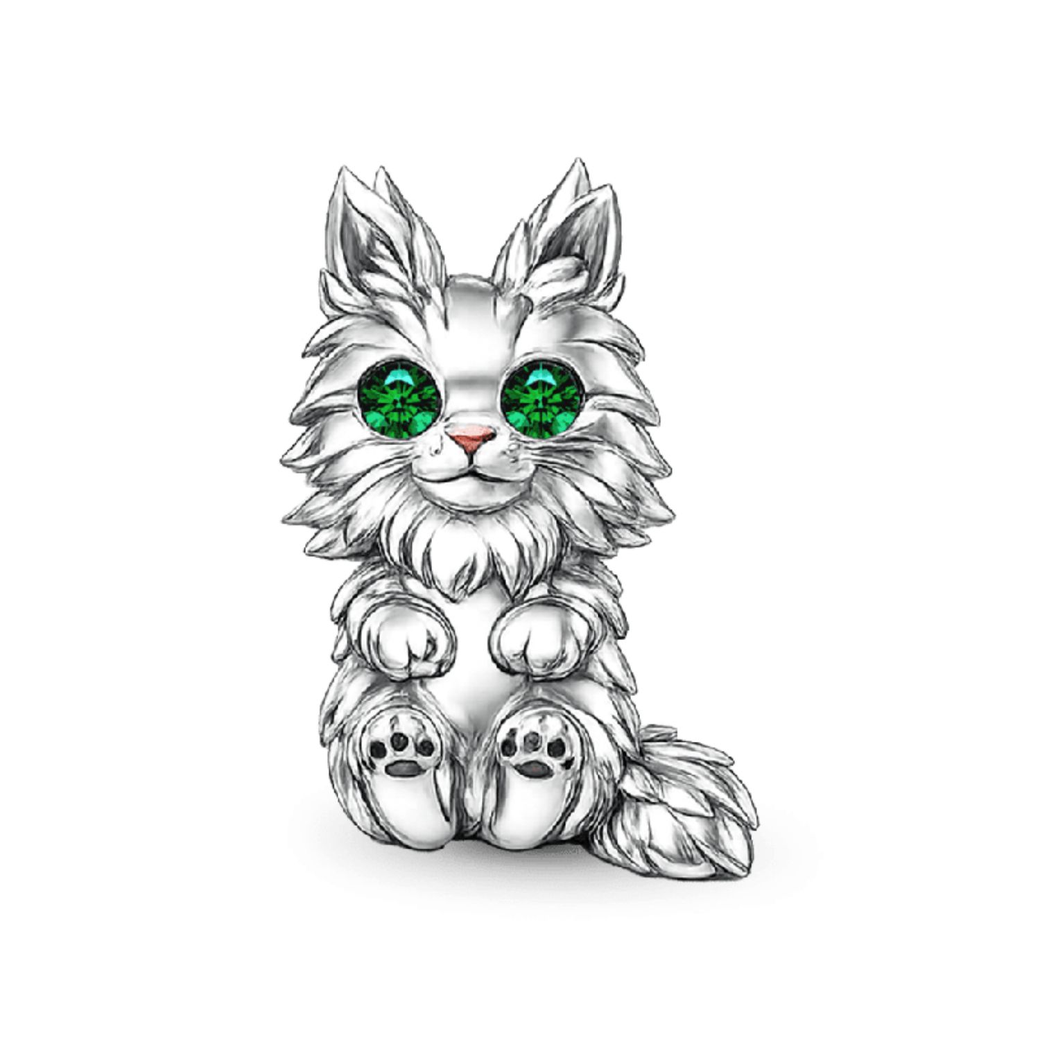 Gefertigt aus 925 Sterlingsilber präsentiert dieser Anhänger das internetberühmte Maine Coon Katzen-Design – mit grünen Zirkonia Stein-Augen und lebensechten Felltexturen. Ein liebliches, exklusives Geschenk für Katzenliebhaber: Sein niedliches, detailliertes Design fängt den ikonischen Charm der Maine Coon ein und macht ihn zu einem entzückenden, tragbaren Accessoire, das jeder Schmucksammlung feline Niedlichkeit verleiht.
