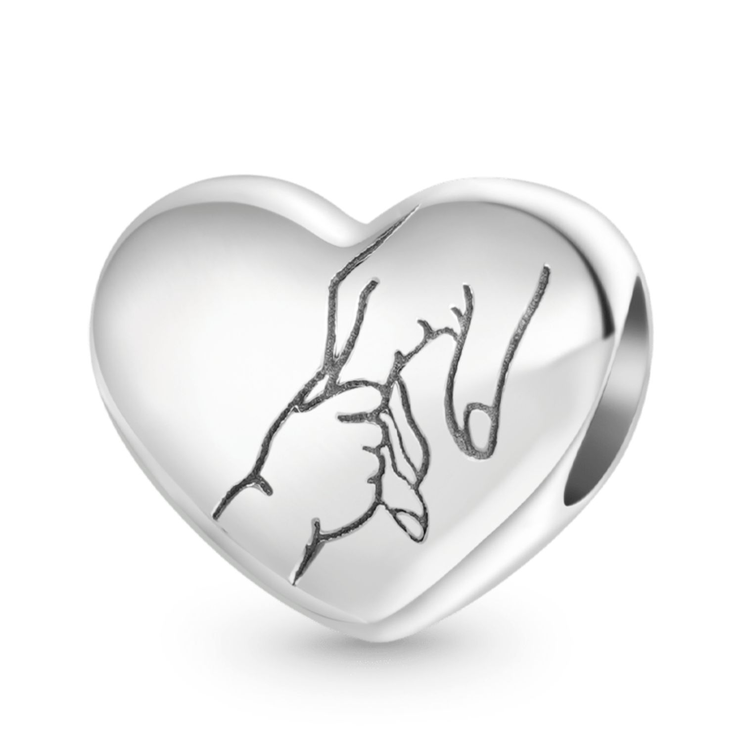 Gnoce "I Love You" Erwachsener & Kind halten Hände Charm, die schön zeigt die Bindung zwischen einer Mutter und Kind. Dieser Charm aus Sterlingsilber stellt den zärtlichen Moment des Händchenhaltens dar und symbolisiert die unverbrüchliche Verbindung zwischen ihnen.