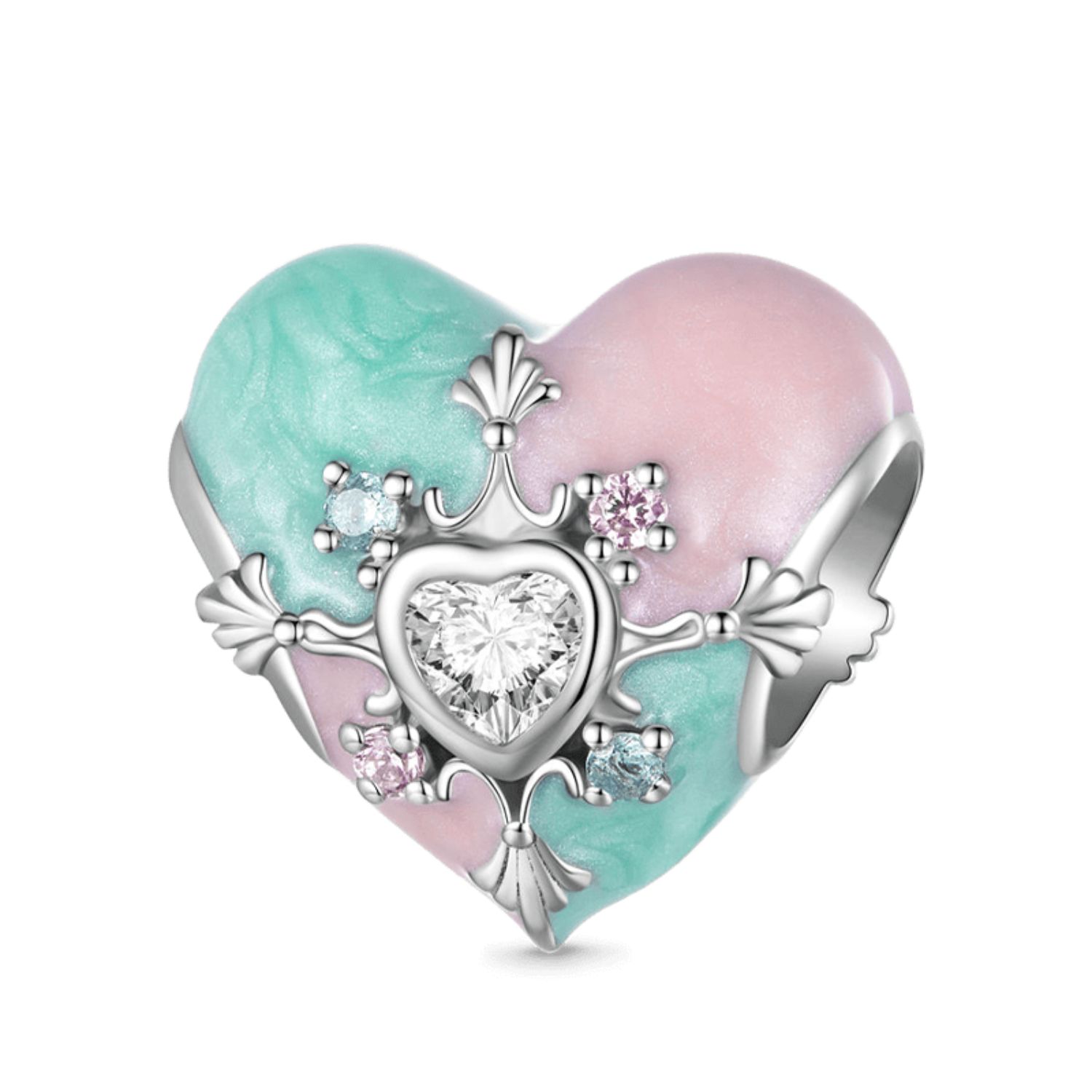 Verziert mit Retro-Mustern und Kreuzen, sind die rosa und grünen Emaillen frisch und schön. Der Charm ist aus 925 Sterlingsilber handgefertigt und zeigt ein Kreuzmuster auf dem Herz. Hoffentlich findet jede Trägerin einen neuen Anfang und eine Fortsetzung des Lebens.
