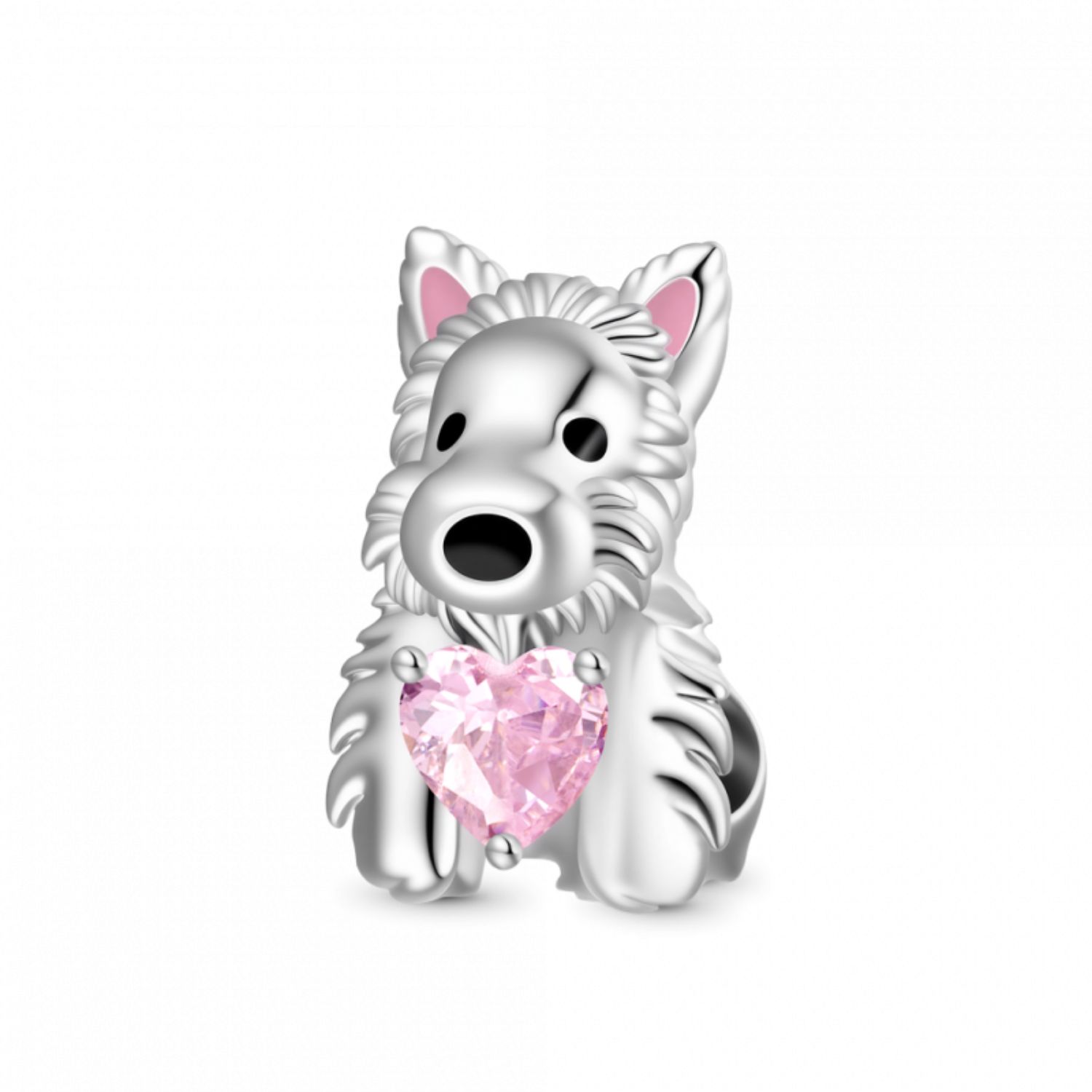 Dieser bezaubernde Anhänger aus strahlendem 925er Sterlingsilber zeigt einen freudigen Westie-Welpen inmitten seiner Überraschung.