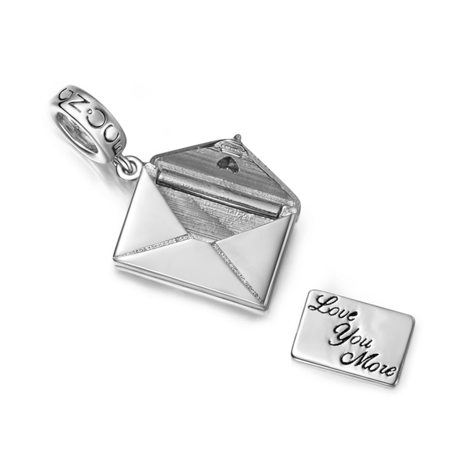 Drücke die Worte der Liebe mit einem gravierbaren Anhänger mit aufklappbarem Umschlag und Liebesbrief aus. Handgefertigt aus 925 Sterling Silber, könnte dieser Umschlag geöffnet werden, es hat eine Karte adressiert "love your more" innen, und dann mit einem roten CZ Stein Herz versiegelt. Das Erstaunliche ist, dass man auf der Rückseite den Namen des Geliebten eingravieren kann. Ein wunderbares Geschenk für den Valentinstag.