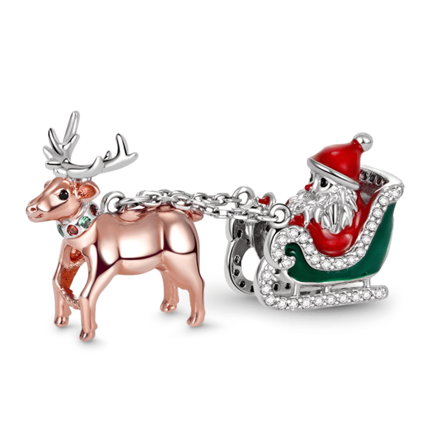 Gnoce Charm Weihnachtsmann mit Rentierschlitten Silber BSCS25