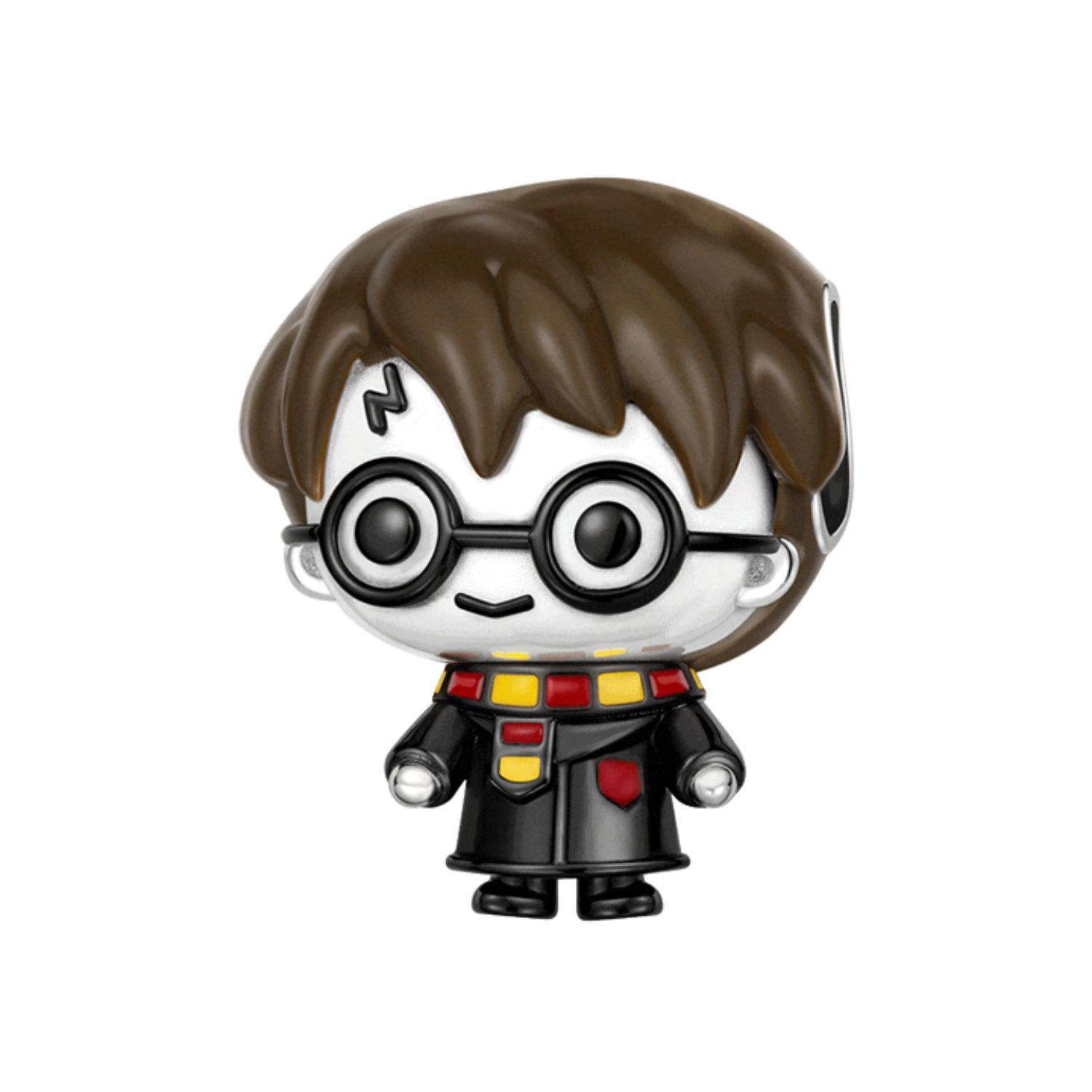 Entdecken Sie die Magie des Jungen, der lebte, mit dieser meisterhaft handgefertigten Harry Potter Charm Perle. Aus 925 Sterlingsilber gefertigt, fängt der Schmuck alle ikonischen Merkmale ein – die zerzausten schwarzen Haare, die strahlenden Augen, die berühmte Blitz-Narbe auf der Stirn und die runde Brille. Der bewegliche Kopf dreht sich ganz sanft und spiegelt Harrys neugierigen und entschlossenen Ausdruck auf all seinen Abenteuern wider. Dieses Stück feiert die große Heldenreise und bringt ein Stück Zauberwelt in Ihren Alltag.