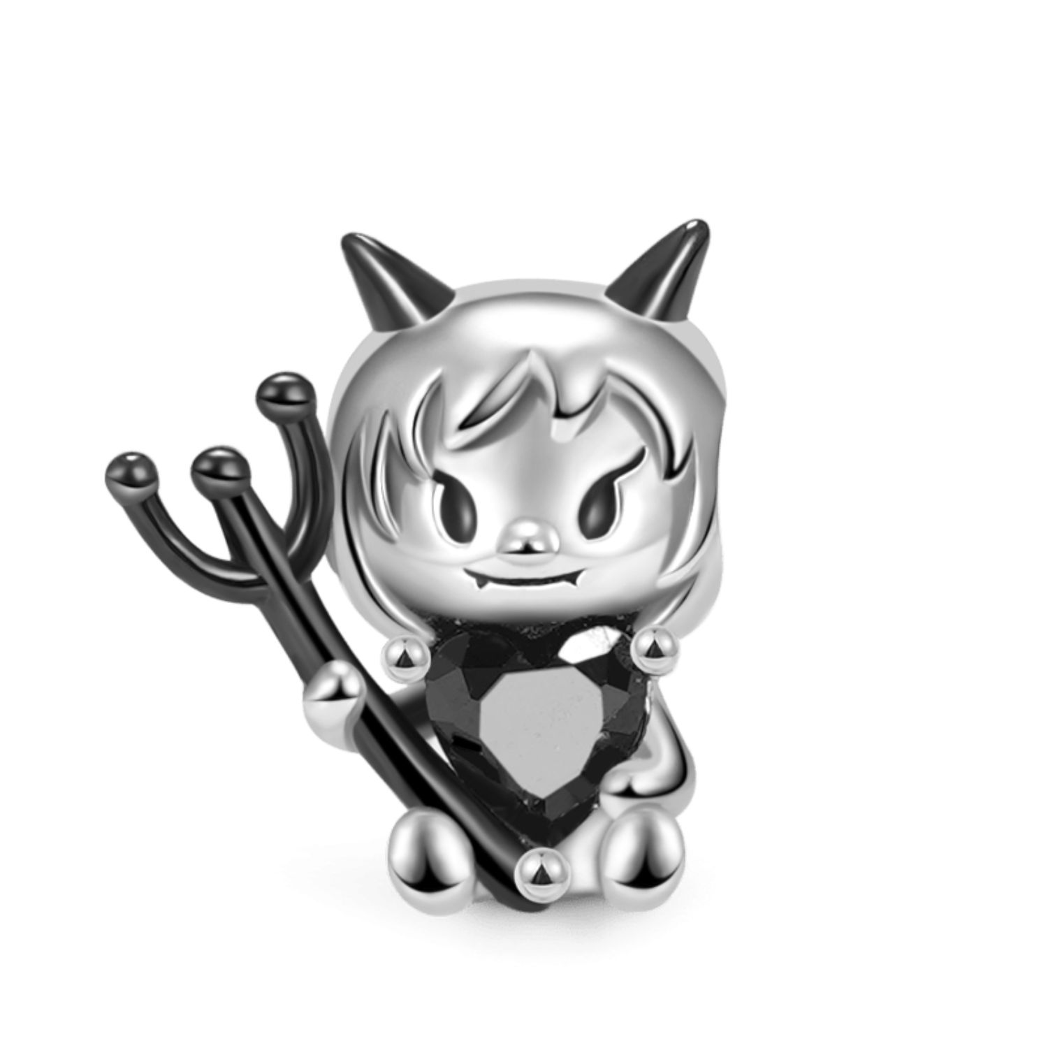 Gnoce Umarmung Sammlung-Niedlicher kleiner Teufel umarmt schwarzen herzförmigen Edelstein Charm.