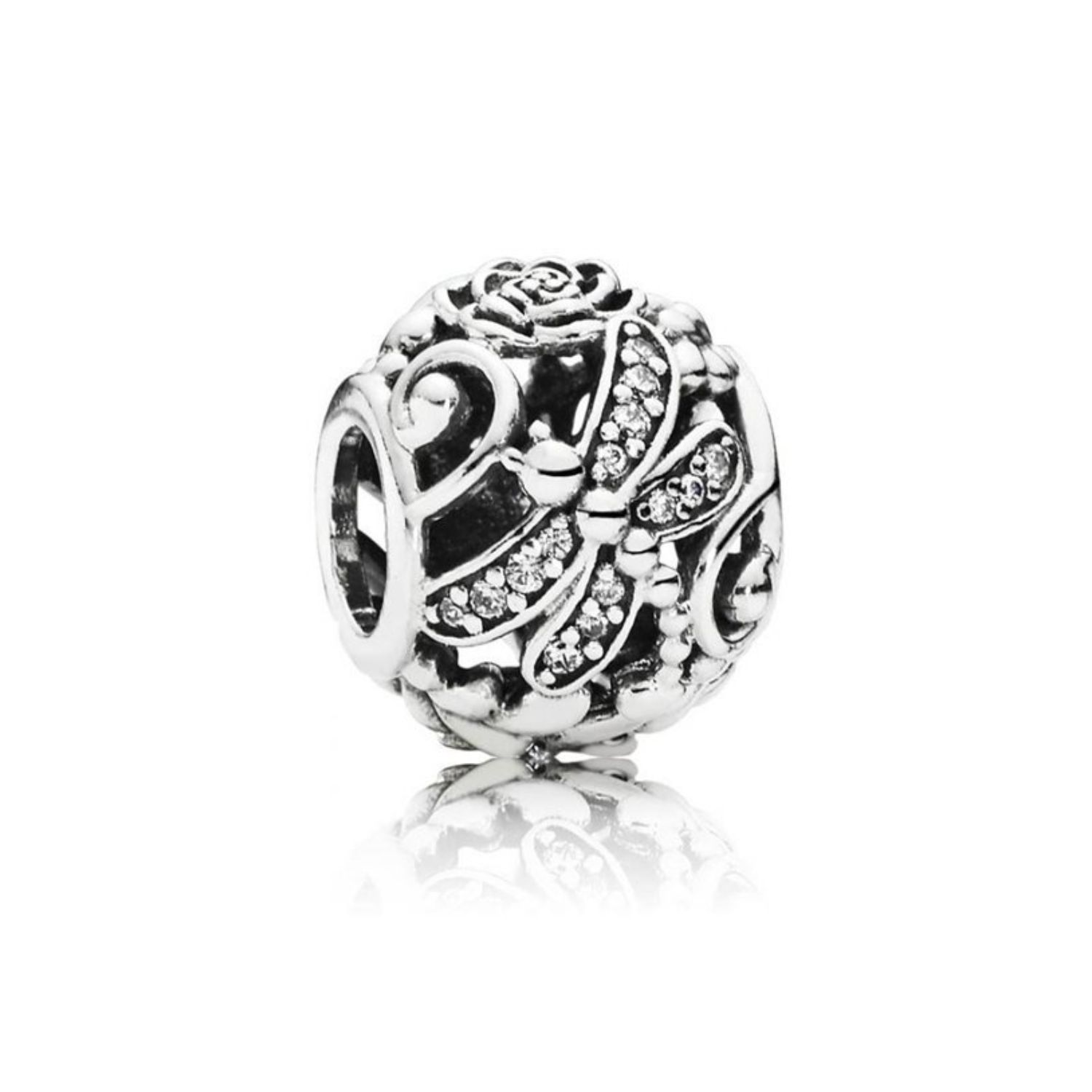 " Funkelnde Libellen " Charm aus 925er Sterling Silber und mit klarem cubic Zirkonia.
