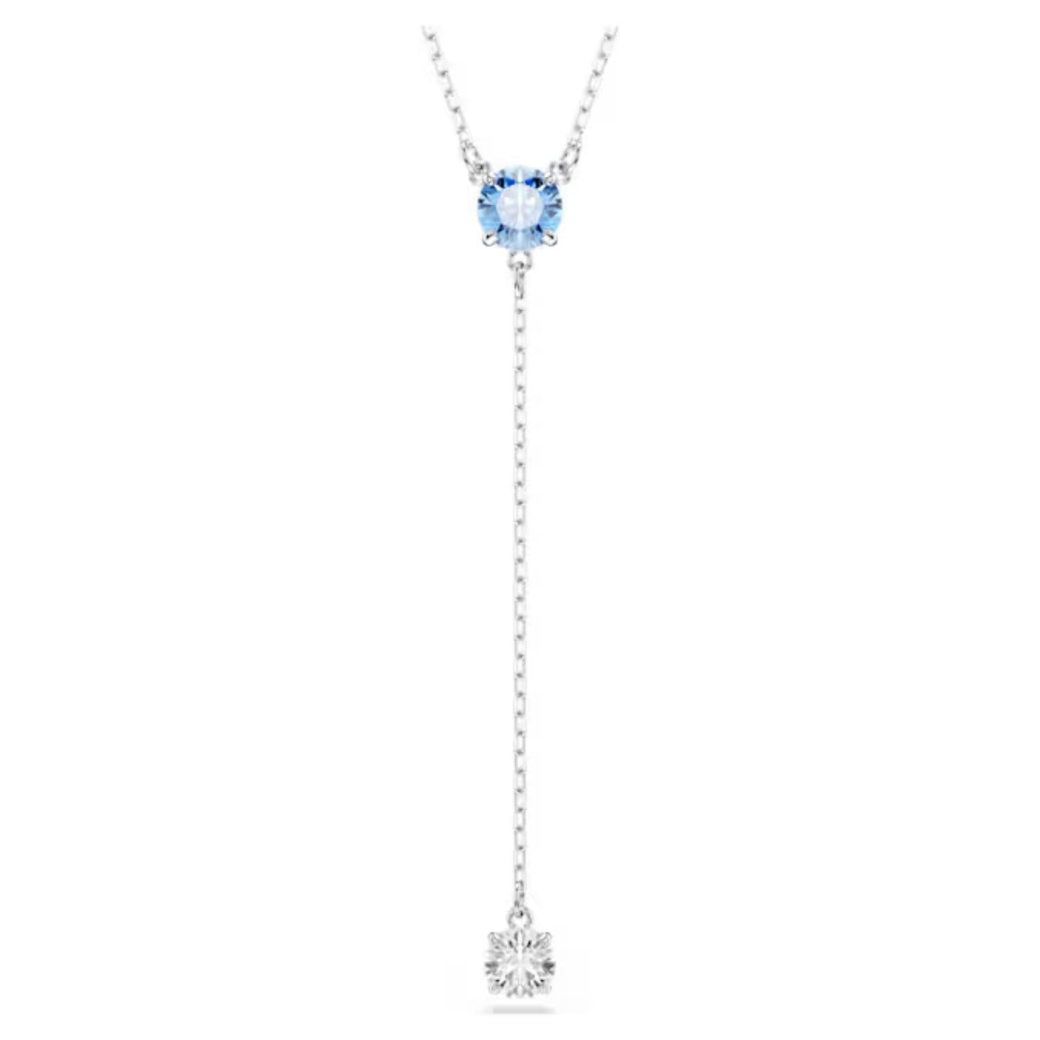 Die schlichten Formen und intensiven Farben dieser Halskette sind Ausdruck purer Lebensfreude im Stil von Swarovski. Das rhodinierte Design präsentiert ein zentrales, blaues Kristallelement im Rundschliff und einen klaren Swarovski Zirconia, der darunter an einer zierlichen Kette hängt. Tragen Sie dieses lichthelle Schmuckstück, um Ihren Look bei besonderen Anlässen zu veredeln.