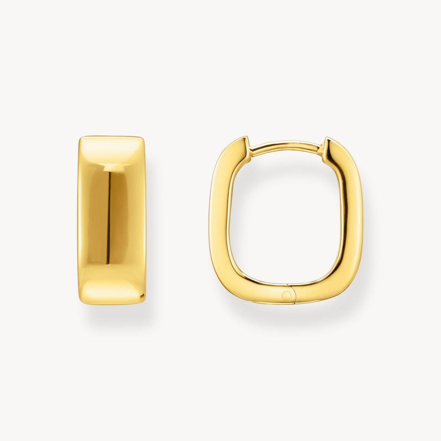 Mit diesen goldfarbenen Creolen machst du alles richtig. Aufgrund ihres minimalistischen Designs und klaren Form sind sie Allrounder, die zu allem passen und sich spielendleicht kombinieren lassen. Sie sind in eckiger Form aus recyceltem 925 Sterling Silber mit einer 18k Vergoldung gefertigt und besitzen eine zeitlos-elegante Ausstrahlung. Trage sie zum Business-Lunch genauso wie zum Dinner-Date – solo oder mit weiteren Creolen kombiniert.