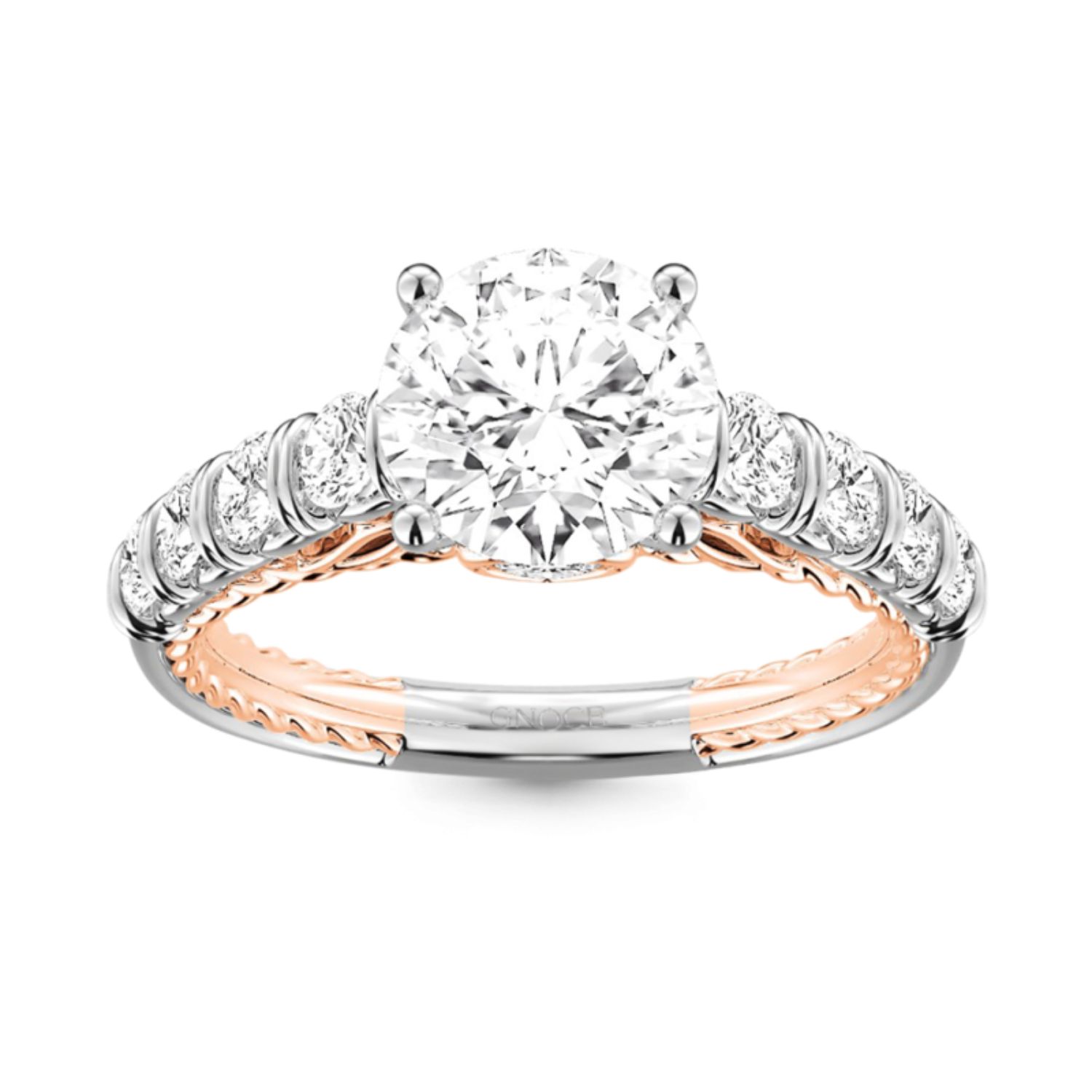 Der Halo Verlobungsring mit vier Zacken und abgewinkelten Flügeln, der für Liebe und Beschützer steht, um den zu beschützen, den man liebt, um Glück und Leid zu teilen, um Traum und Zuhause zu teilen. Lassen Sie dieses Versprechen Ring Ihr neues Leben beginnen.