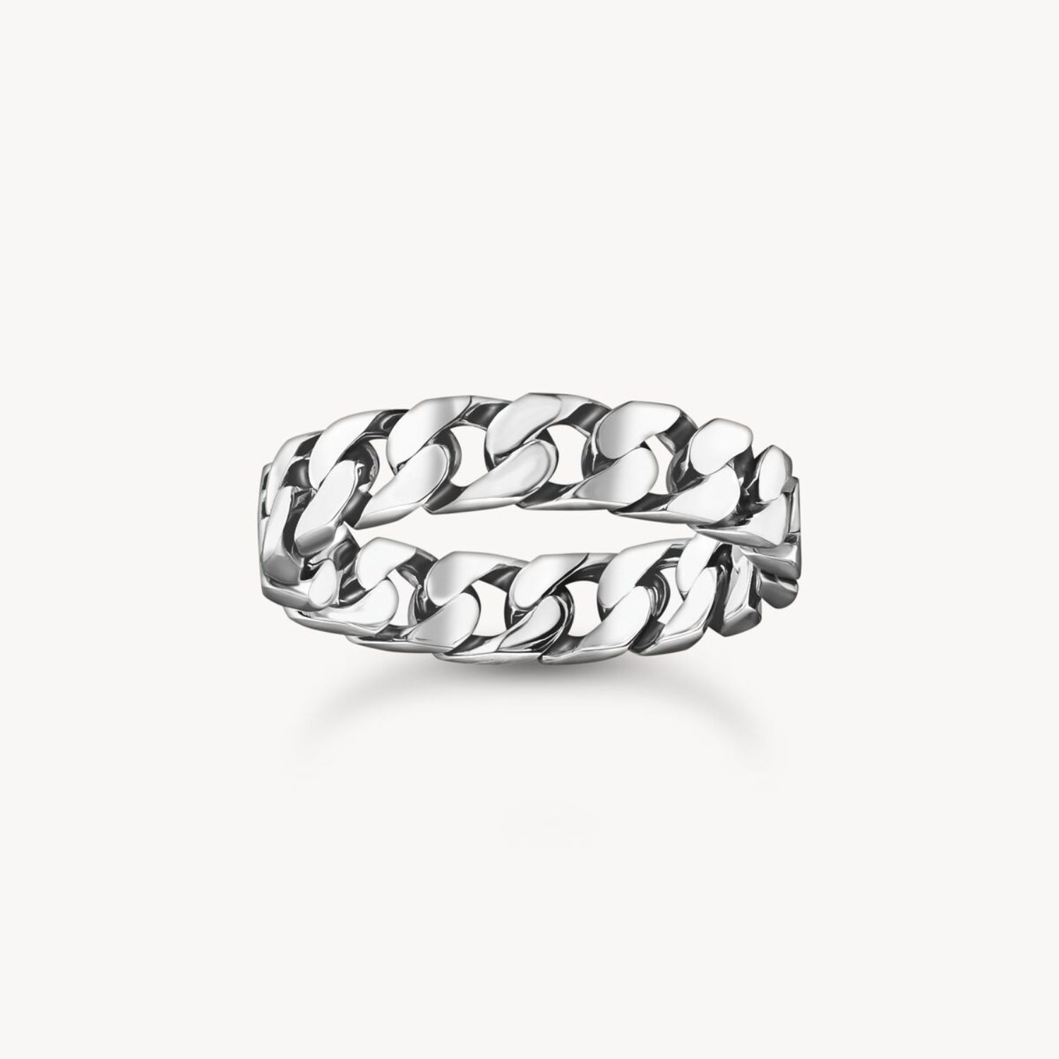 Perfekt für minimalistische und vielseitige Styles: Dieser schmale Bandring besteht aus recyceltem 925 Sterling Silber, leicht geschwärzt. Schlicht und zugleich außergewöhnlich ist er im Design von Kettengliedern gestaltet. Inspirationsquelle ist die beliebte Panzerkette. Der Ring ist Unisex und in vielen verschiedenen Größen erhältlich – der ideale Partnerring.